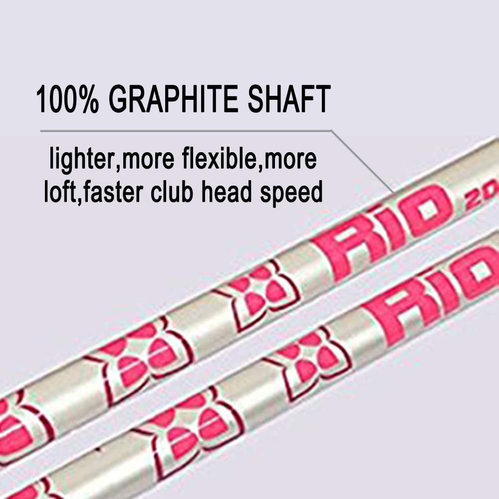 The benefits of this graphite children’s golf putter:shaft lighter,more flexible,more loft,faster club head speed,easier to play,suitable for golf beginner with less strength