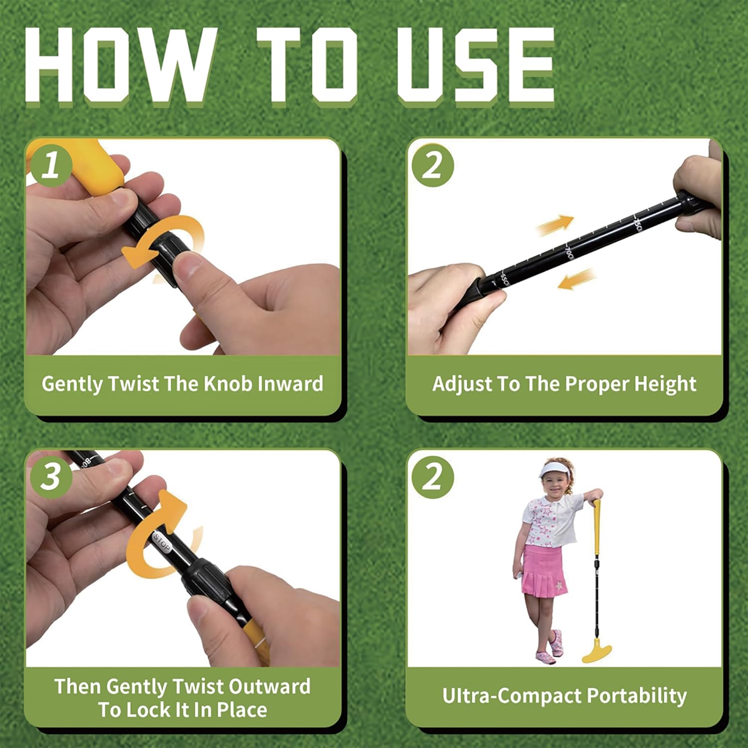 【Comprehensive Practice Kit for Kids】 Comprising 1 putter, 8 Golf Practice Balls, 1 golf ball bag, 1 storage bag, and 1 putting cup, this set is designed to captivate children and ignite their passion for golf from the get-go. The retractable golf club putter shrinks to just 40cm and includes a handy storage bag, making it ideal for families on-the-go. Whether on vacation or a day out, it ensures effortless golf practice anytime, anywhere.