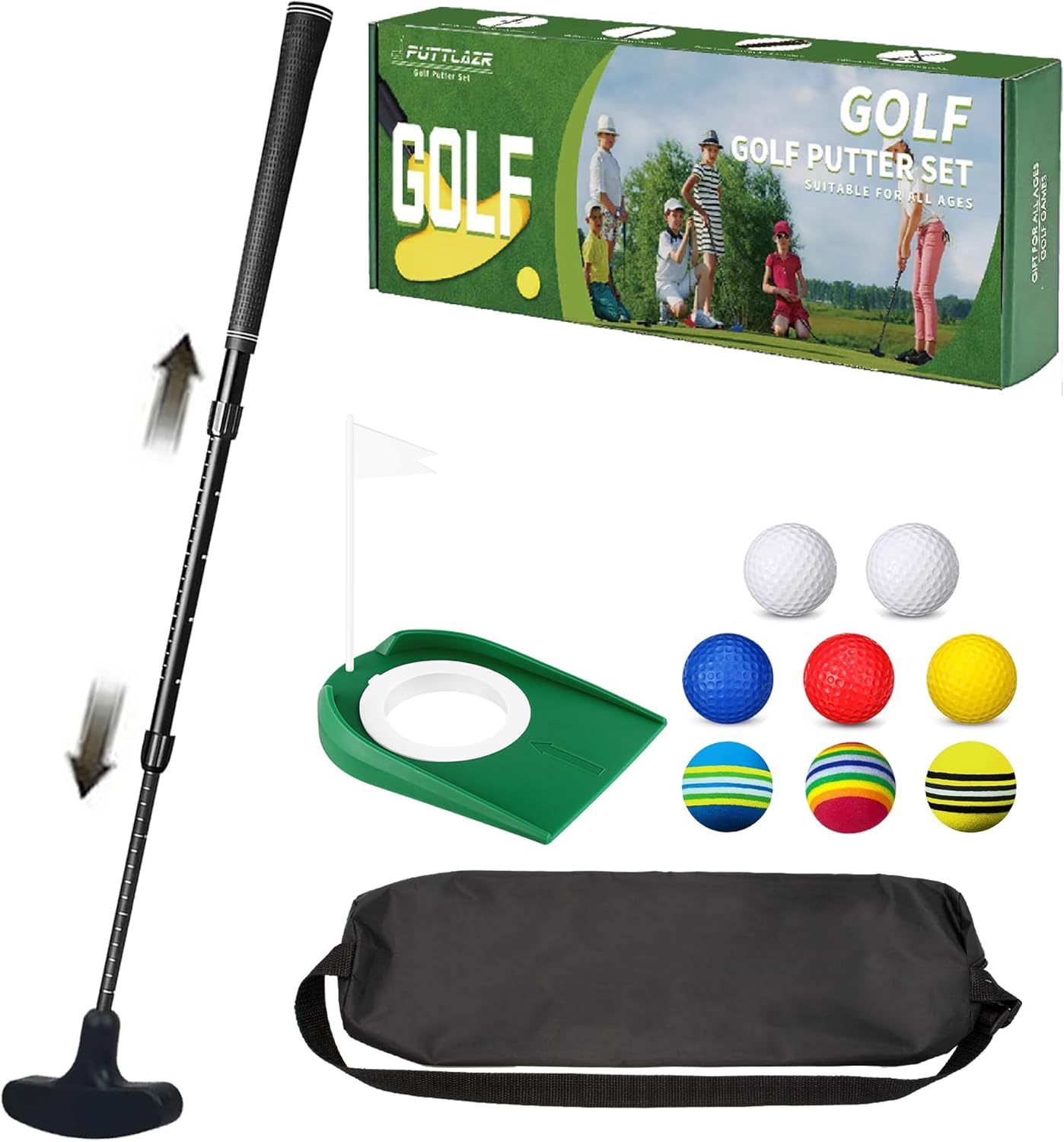 【Upgraded Golf Putter Set】 Through continuous improvement and upgrades by our team, the PUTTLAZR Golf Putter with its dual-directional design provides a comfortable grip, simplicity of use, and practicality. It also comes with 8 golf practice balls, allowing you to practice your golf game anytime, anywhere. Whether you’re traveling, on the golf course, at home, or in the office, you’ll experience an exciting golf match!