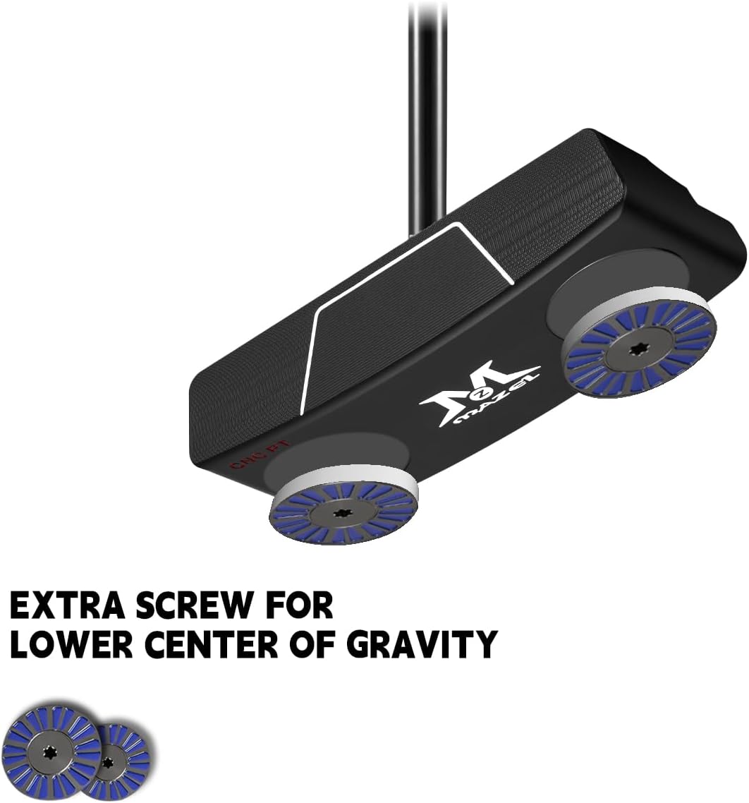 LOWER CENTER OF GRAVITY: The extra weighted screws on the bottom of putter reposition the weight,make the center of gravity lower & deeper for better acceleration through impact.