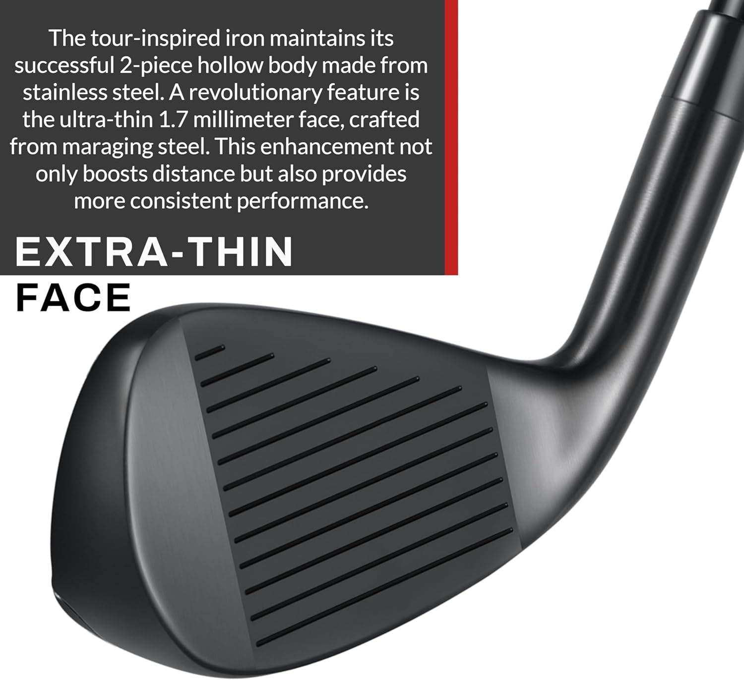 【Extra-Thin Face Tech】 The tour-inspired PGF Gold TP Pro Driving Ironmaintains its successful 2-piece, TPE resin-injected hollow body made from 431 stainless steel. A revolutionary feature is the ultra-thin 1.7 millimeter face, crafted from 455 maraging steel. This enhancement not only boosts distance but also provides more consistent performance across the entire face.