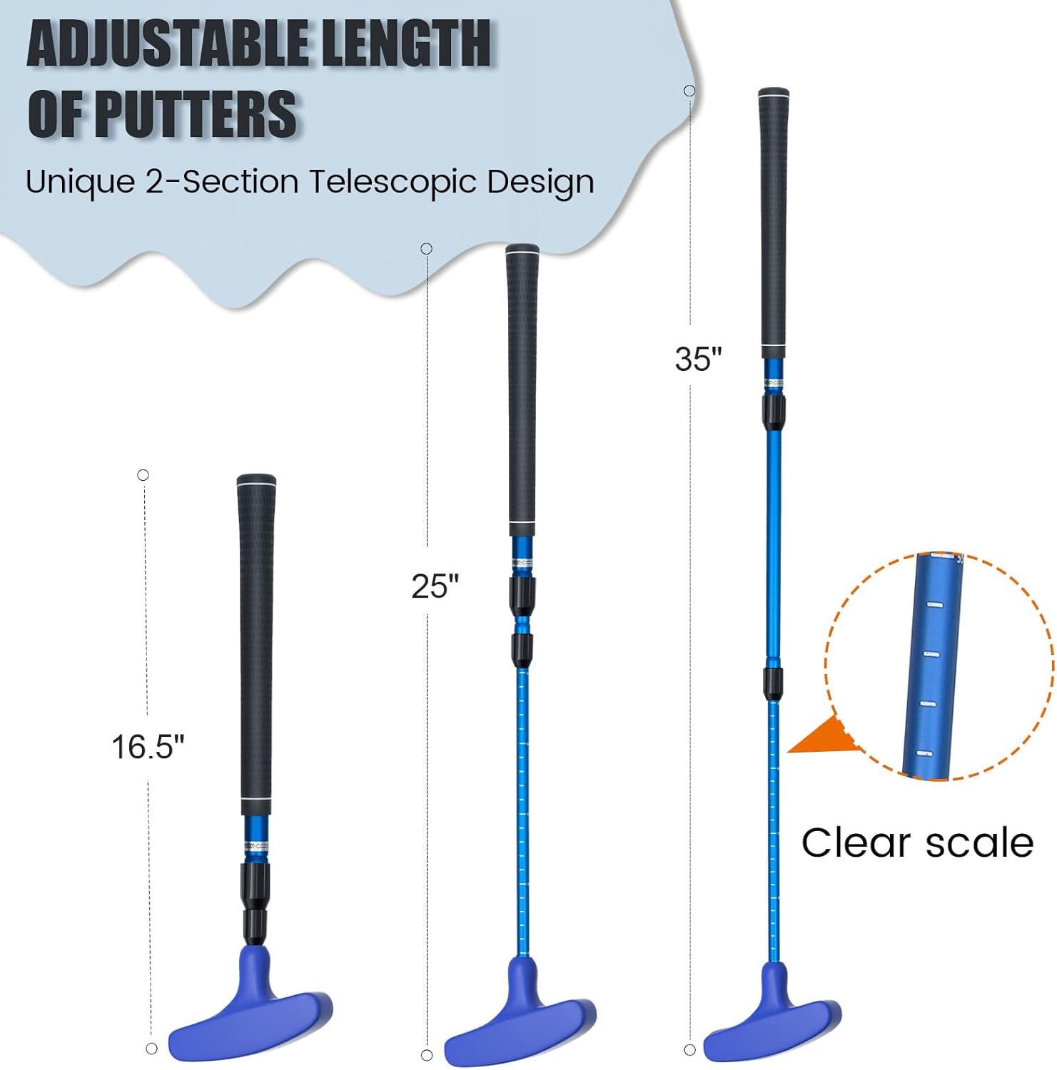 【Upgraded Telescopic Golf Putter】 Unique 2-section telescopic golf putter design, no disassembly and installation, easy to use, and you can choose the right length of sturdy shaft to meet your needs, flexible telescopic putter to help you reach the best level, let you enjoy more fun of golf.
